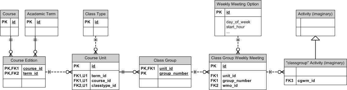 Class Group Weekly Meeting, Class Type, Course, Course Edition, Course Unit, Weekly Meeting Option.